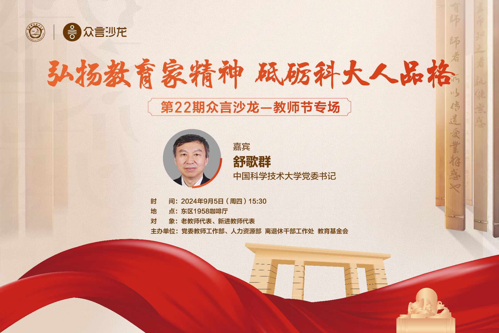 第22期“众言沙龙”——教师节专场 (嘉宾:校党委书记 舒歌群) |