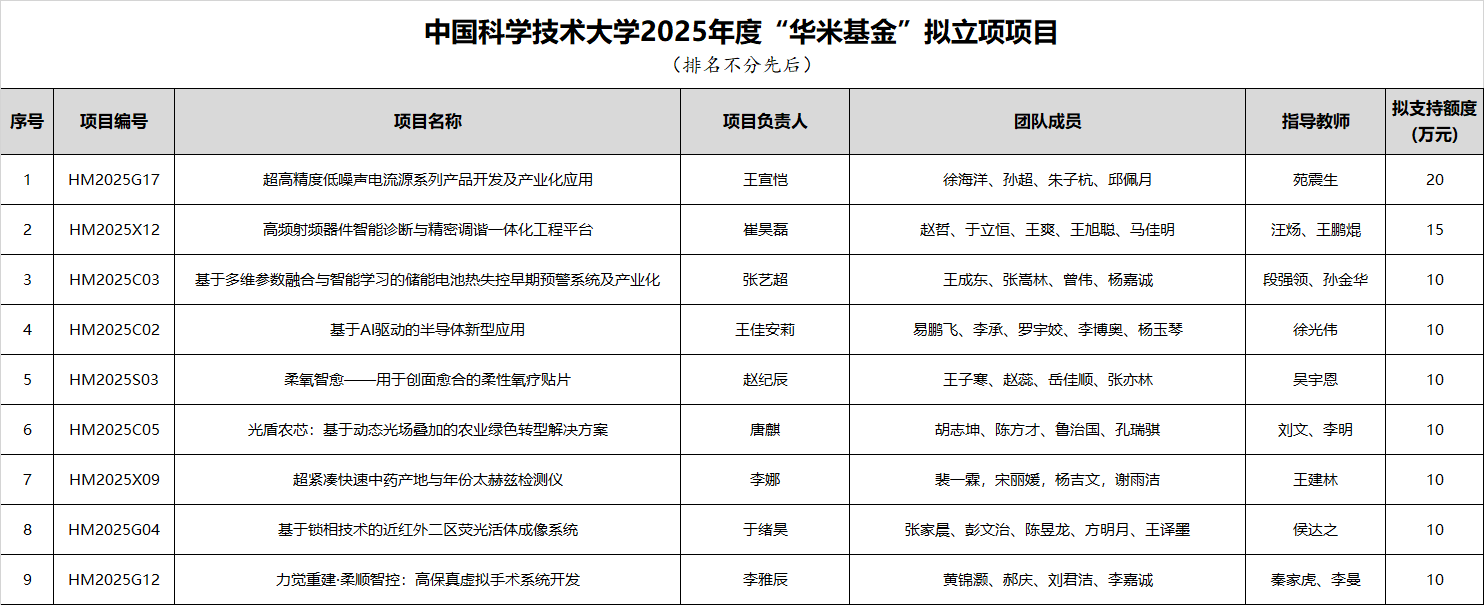华体会在线注册2025年度“华米基金”项目申报评审工作已顺利结束,经过项目申报、资格审查、尽职调查及管理委员会投票等环节,确定“超高精度低噪声电流源系列产品开发及产业化应用”等9个项目为2025年度“华米基金”拟立项项目。