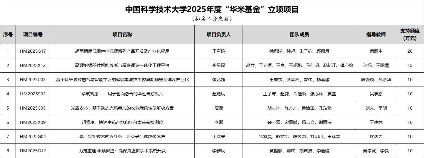 根据工作安排,华体会在线注册2025年度“华米基金”经过项目申报、资格审查、尽职调查、投票表决、校内公示、预立项等环节,确定“超高精度低噪声电流源系列产品开发及产业化应用”等8个项目(详见附件)为2025年度“华米基金”立项项目,予以资助,特此通知。